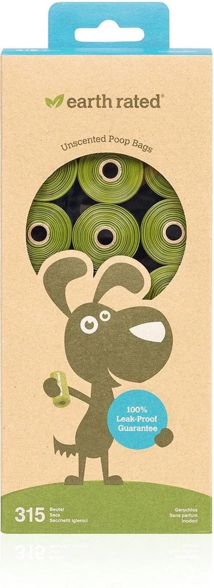 De Earth Rated Afvalzak Geurloos 21 x 15 stuks zijn 15 poepzakjes op 21 rollen, 100% lek-proof en geleverd in recyclebare verpakking. Ideaal voor huishoudens met veel honden! De poepzakjes extra dik om geurtjes en lekkage te voorkomen. Deze zakjes zijn zo gemaakt dat zij biologisch afbreekbaar zijn: binnen twee jaar zijn de zakjes volledig afgebroken. Zo draag je ook jouw steentje bij aan een beter milieu!