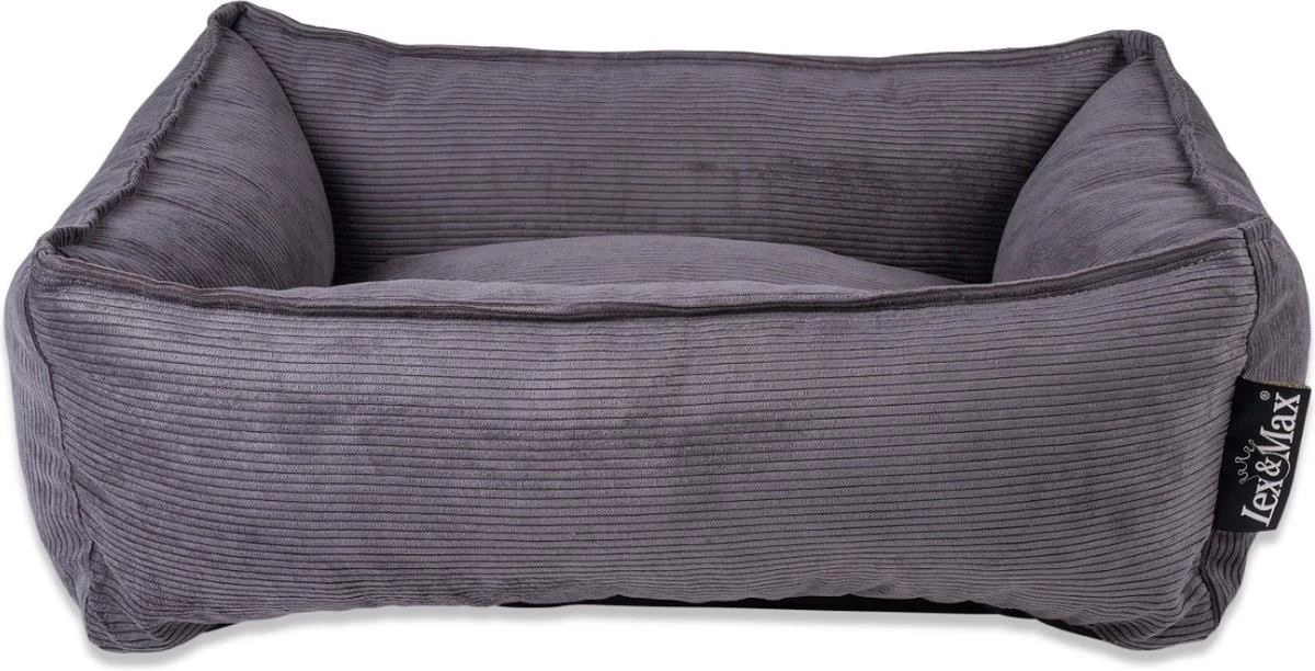 Lex & Max hondenmand Chicago Grijs 60 x 45 cm Ribfluweel is weer hip! De stijlvolle en stevige meubelstof “ribfluweel” is nu weer net zo modern als toen. Deze mooie hondenmand in de populaire stof past in vele interieurs doordat het goed te combineren is met vele sferen. De fluweel zachte ribstof van hoogwaardige kwaliteit geeft de mand een uitstraling die door geen andere mand geëvenaard wordt. De Lex en Max “Hondenmand Chicago” is een prachtige stijlvolle mand met stevige opstaande wanden. De wanden zijn dusdanig gevuld dat de hond er heerlijk tegenaan kan liggen of zijn kop er op kan laten rusten zonder dat het inzakt. De mand kan rechtstreeks op de grond worden geplaatst en zal daar fungeren als lekkere loungeplek voor uw royal pet. * Materiaal: De volledig afritsbare buitenhoes van de mand is gemaakt van 100% Polyester. De open geritste hoes is voorzien van 5 compartimenten. Ieder compartiment heeft een eigen vulling. * Afmeting: De totale afmeting is ± 60 x 45 x 20 cm (LxBxH). De afmeting van het ligoppervlak is ± 35 x 20 cm. Deze afmeting is geschikt voor de kleine hondenrassen. * Sluiting: De hondenmand heeft 2 verborgen ritsen waardoor ze niet zichtbaar zijn en de hond er niet bij kan. Door de mand binnenstebuiten te draaien komen de ritsen tevoorschijn zodat de vulling eruit gehaald kan worden. * Wasvoorschrift: De mand is goed afneembaar met een vochtige doek. Ook mag de buitenhoes binnenstebuiten gewassen worden op 30°C. * Vulling: Schuim-granulaat * Toepassing: Hondenmand voor op de grond. * Let op: Draai de mand altijd eerst binnenstebuiten alvorens de ritsen te openen. Alleen zo kan de vulling eruit worden gehaald / erin worden gedaan. De stylisten van Lex en Max zijn er niet alleen op uit om de huisdieren te voorzien van hun ultieme troon maar ook om de woonkamer te verrijken met een mooie blikvanger. Zo spreken we bij Lex en Max niet van hondenmanden maar van woonaccessoires waar de hond op mag liggen!