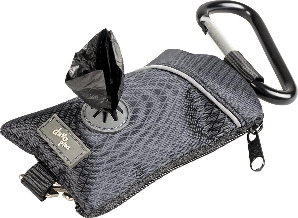 Deze sportieve poepzakhouder in nylon van duvoplus mag niet ontbreken tijdens een heerlijke wandeling met je hond. Met de clip kan je de houder gemakkelijk aan een riem of leiband vastmaken. De hervulbare dispenser is voorzien van (2x20st) poepzakjes, speciaal ontwikkeld voor het hygiënisch verpakken van wat jouw hond achterlaat